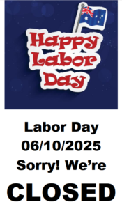We are closed on the following Monday (06/10/2025) – Labor Day, will be re-open as usual on Tuesday from 10am-6pm.